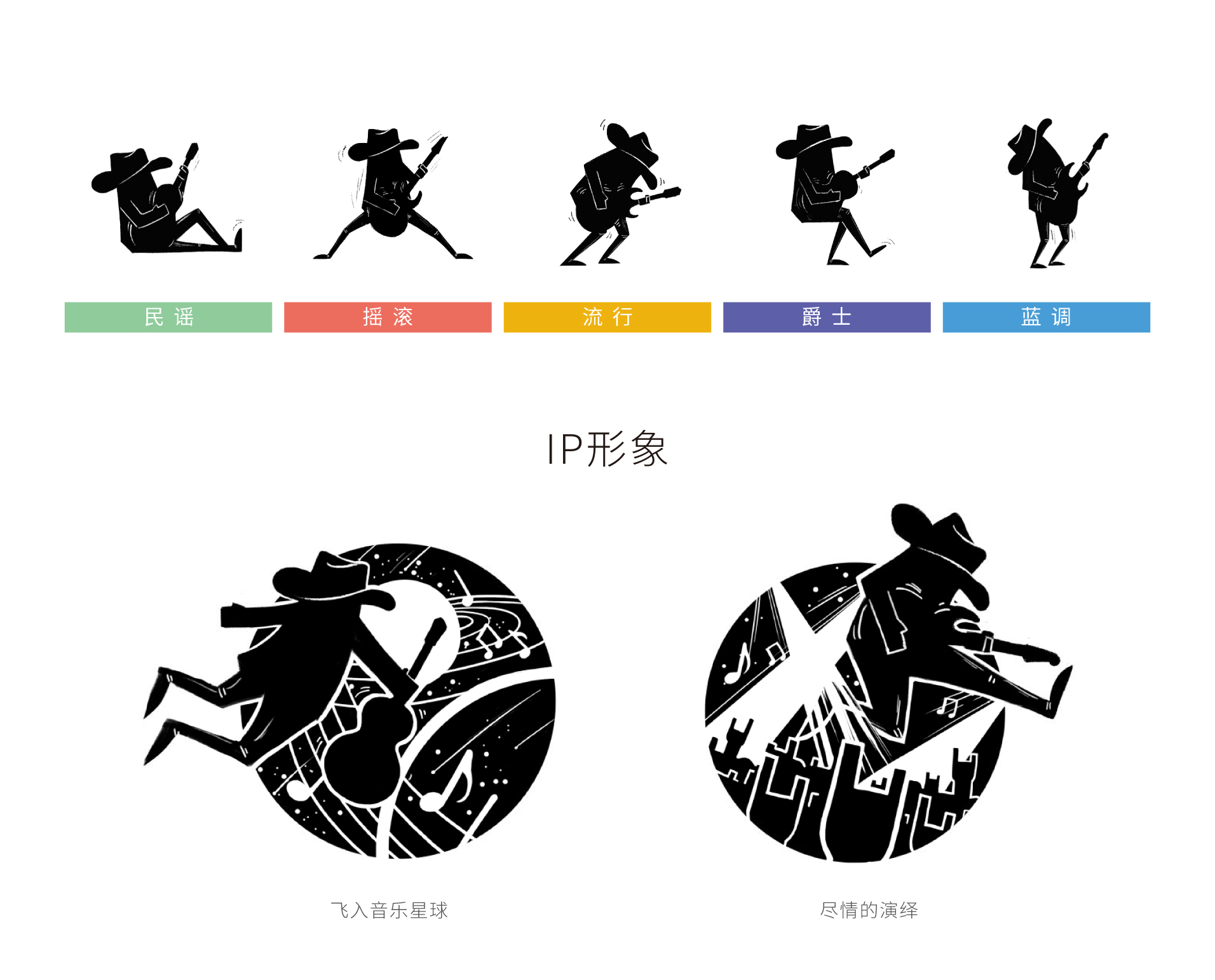 创作思考:国内外的品牌形象多以琴弦图形或者英文花体字为标志识别,用户除了对金字塔顶端的个别吉他品牌外,难以识别、区分其它吉他品牌。因此,我们希望在品牌识别上摆脱视觉惯性,打破常规视觉惯性的枷锁,脱离视觉创作的舒适区,对标志与品牌形象进行大胆的创作与创新。